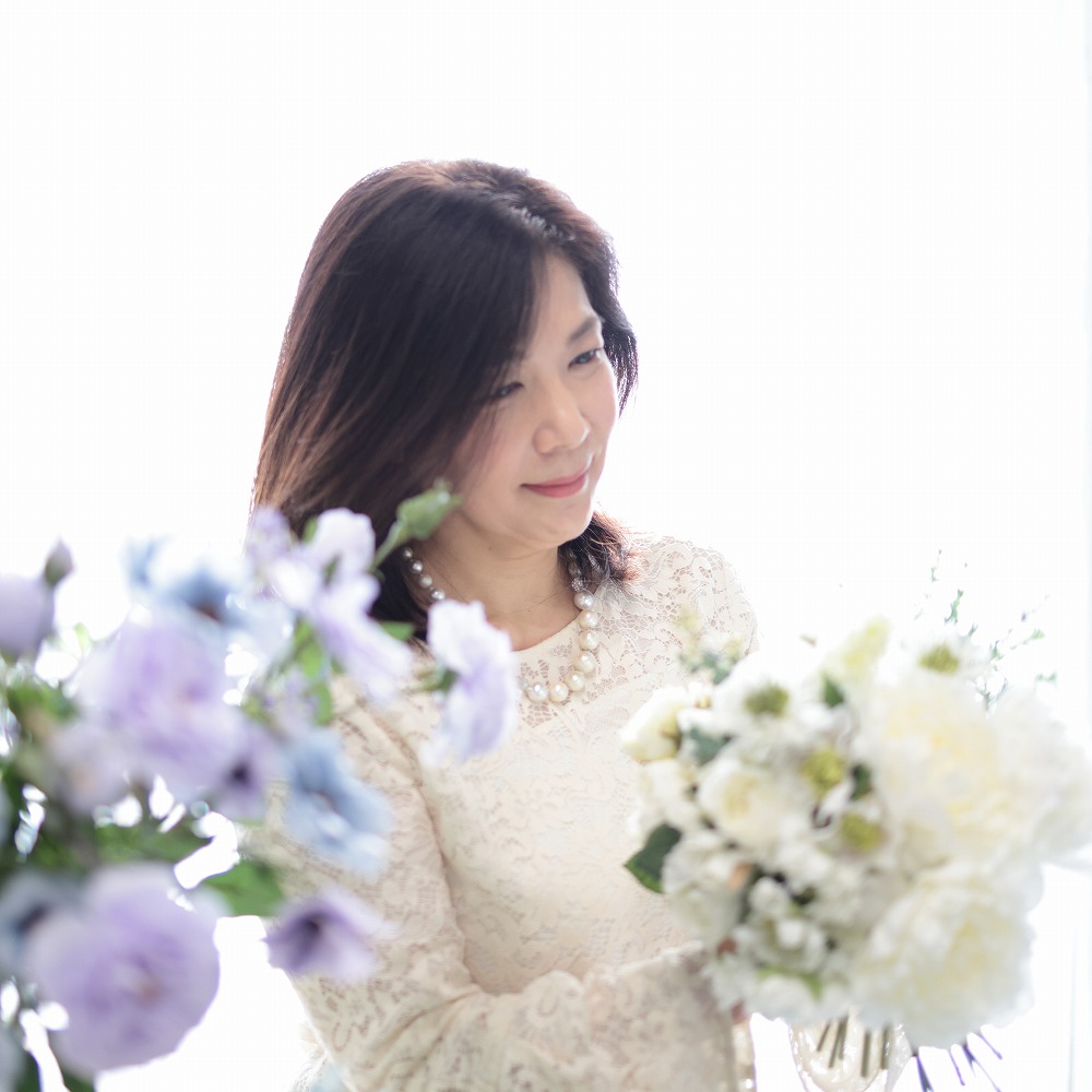 パリテイストのエレガントで優しさあふれるムードを得意とし、自身も、コンペに参加・パリ花研修などに参加してスキルと感性を磨き続けている。